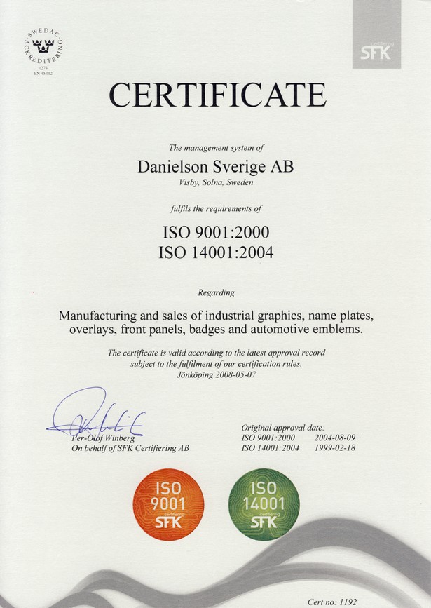 bygger på kvaliteten hos våra leveranser och processer. Därför arbetar vi sedan många år mycket målmedvetet med kvalitets- och miljöfrågor.